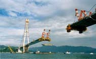 Several factors were considered before this decision was made. Characteristics of cable-stayed bridges compared with suspension bridges with center spans ranging from 500 m to 2,000 m were carefully studied. The three main factors considered included the aerodynamic design, the eventual cost and the ultimate impact upon the natural environment. In all three instances, the cable-stayed bridge was superior.
