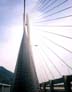 Of particular interest were the cables, which were installed in a fan shape with two planes of 21 rows of cables fixed to each side of the towers. The 168 cables were made of semi-parallel wire strands consisting of galvanized wires 7 mm in diameter covered with polyethylene tubing. The longest cables consisted of 379 wires, were 460 m long and had a diameter of 169 mm.